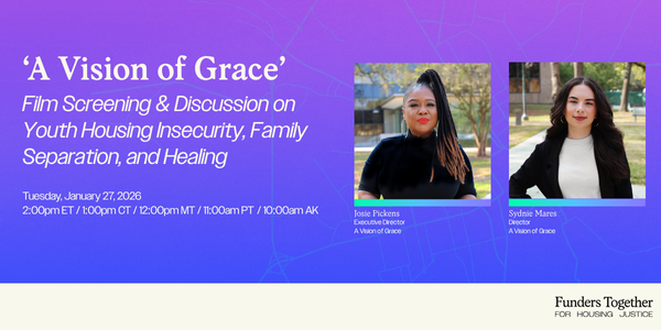 This event is hosted by the Funders Network for Youth Success, a peer network of Funders Together for Housing Justice. If you are already a member of this network, use the same link as the Youth Homelessness Funder Strategy Circle already on your calendar. If you are not, RSVP for this event using the button below. Once a Funders Together staff person has confirmed your eligibility, Michael Durham will forward you the calendar invitation with the access link.